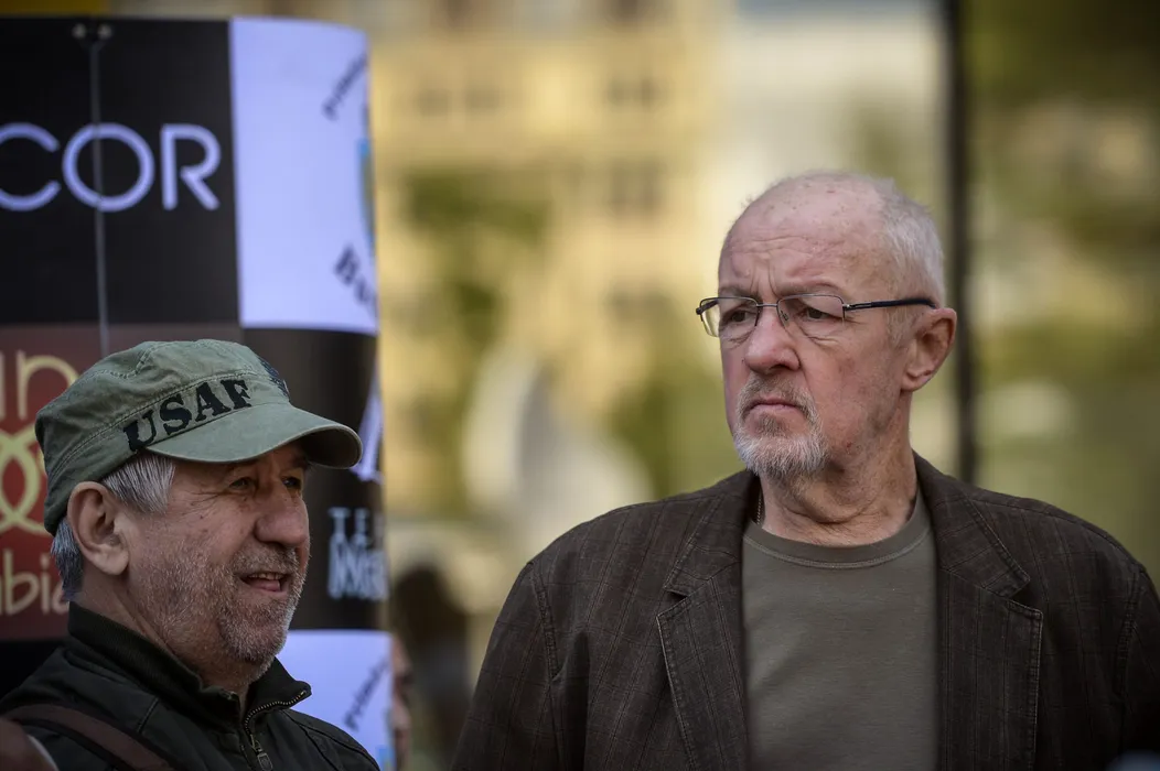 George Mihaita, alaturi de Vladimir Gaitan, participa la o ceremonie in cadrul careia actorii Alexandru Arsinel si Ion Dichiseanu primesc o stea, iar regretatului Sergiu Nicolaescu ii este oferita postum o stea pe Walk of Fame - Aleea celebritatilor, in Piata Timpului din Bucuresti, sambata, 30 mai 2015. ANDREEA ALEXANDRU / MEDIAFAX FOTO