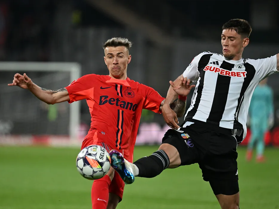 Octavian George Popescu si Vladislav Blanuta în meciul de fotbal dintre Universitatea Cluj si FCSB, contând pentru Play off-ul Superligii Superbet, desfășurat pe Cluj Arena din Cluj Napoca, duminica 11 mai 2025. © FOTO:Răzvan Pasarica/SPORT PICTURES