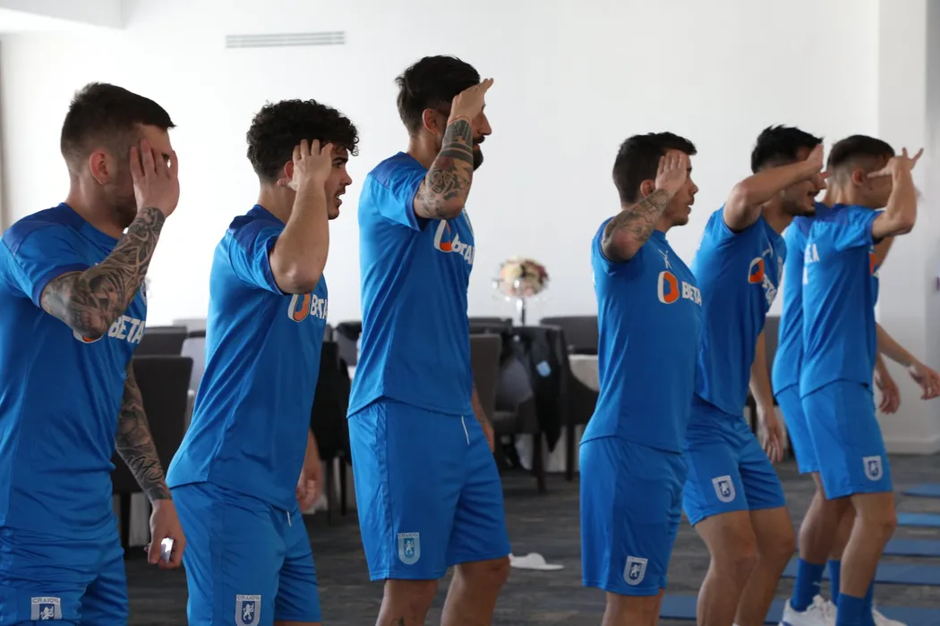 Voie bună la Universitatea Craiova înaintea meciului cu Chindia! Jucătorii au râs copios la un joc reinventat | GALERIE FOTO