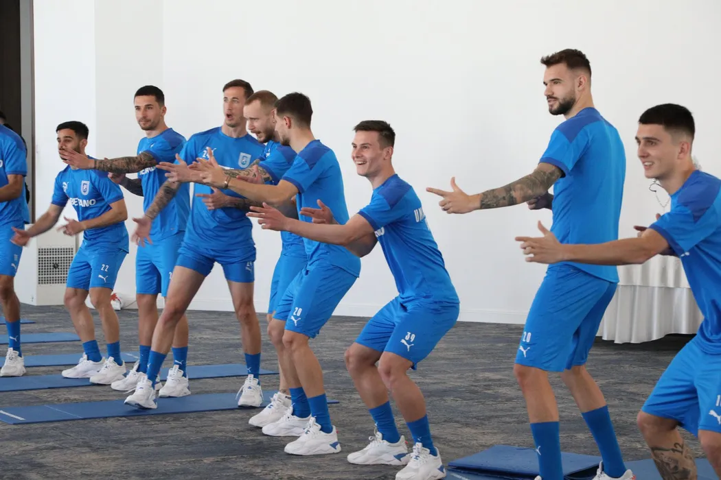 Voie bună la Universitatea Craiova înaintea meciului cu Chindia! Jucătorii au râs copios la un joc reinventat | GALERIE FOTO