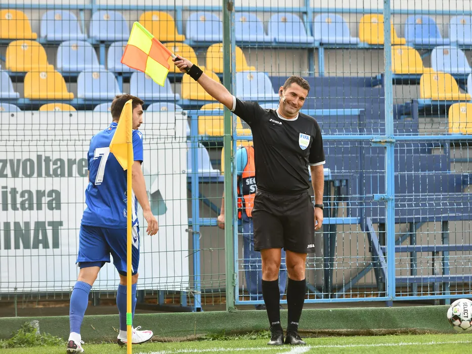 Razvan Toni Gradinaru alaturi de arbitrul asistent Vladimir Urzica care arata un aut in meciul de fotbal dintre FC Voluntari si Sepsi OSK Sfantu Gheorghe, contand pentru Liga 1 Casa Pariurilor, desfasurat fara spectatori pe Stadionul Anghel Iordanescu din Voluntari, vineri 25 septembrie 2020. © FOTO:Razvan Pasarica/SPORT PICTURES