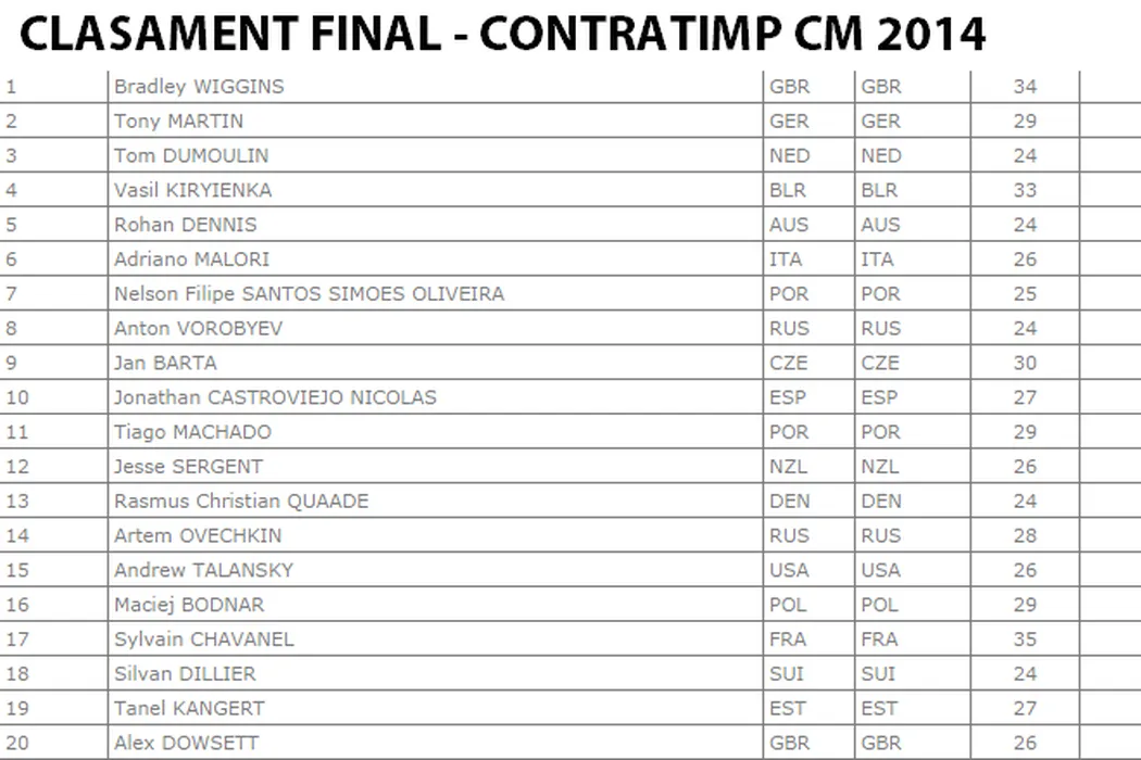 Wiggins, surpriză enormă la Ponferrada: L-a învins pe Tony Martin la cursa de contratimp a Campionatului Mondial. Românul Tvetcov, pe locul 44