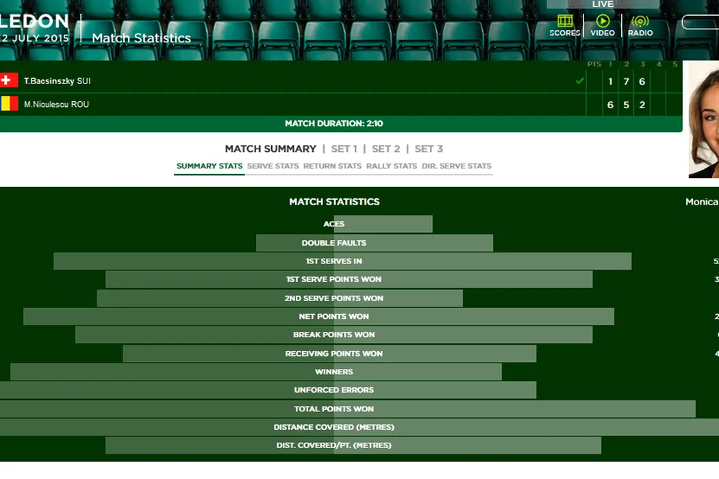 Wimbledon, ziua a 7-a. La simplu, ultima tricoloră a pierdut în optimi: Niculescu, un set autoritar cu Bacsinszky, replică palidă în decisiv. Timea: „am alergat ca un iepure”. Mergea și Tecău, în sferturi la dublu. Victorie la mixt pentru Olaru