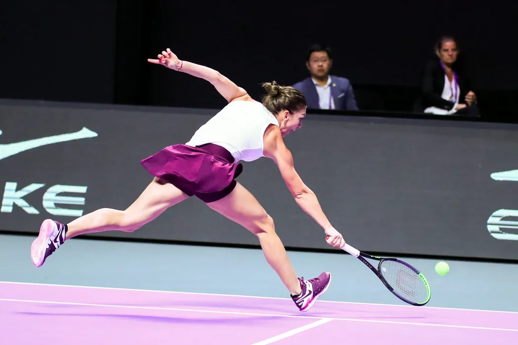 Romanian professional tennis player Simona Halep competes against Canadian professional tennis player Bianca Andreescu during a group match of WTA Finals 2019 tennis tournament in Shenzhen city, south China's Guangdong province, 28 October 2019. *** Local Caption *** fachaoshi, Image: 479433439, License: Rights-managed, Restrictions: , Model Release: no, Credit line: Gao Xia / Imaginechina / Profimedia