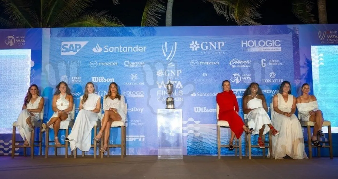 Maria Sakkari of Greece, Jessica Pegula of the United States, Elena Rybakina of Kazakhstan, Aryna Sabalenka of Belarus, Iga Swiatek of Poland, Coco Gauff of the United States, Ons Jabeur of Tunisia & Marketa Vondrousova of the Czech Republic during the draw gala ahead of the 2023 WTA Finals Cancun, WTA tennis tournament on October 27, 2023 in Cancun, Mexico - Photo Rob Prange / Spain DPPI / DPPI,Imagine: 819010922, Licenta: Rights-managed, Restrictii: Hungary Out, Model Release: no, Credit line: ROB PRANGE / AFP / Profimedia