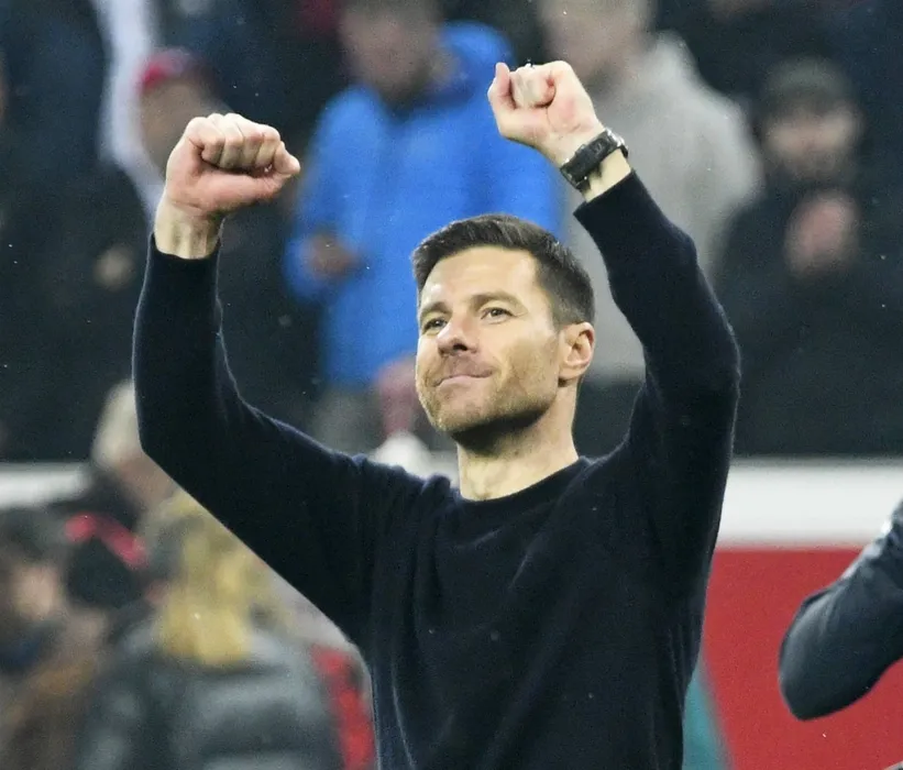 BayArena Leverkusen, 10.2.2024, Fussball: Bundesliga Saison 2023/2024 21.Spieltag Bayer 04 Leverkusen B04 vs FC Bayern Muenchen FCB Trainer Xabi Alonso B04 jubelt DFL DFB REGULATIONS PROHIBIT ANY USE OF PHOTOGRAPHS AS IMAGE SEQUENCES AND/OR QUASI-VIDEO *** BayArena Leverkusen, 10 2 2024, Soccer Bundesliga Season 2023 2024 21 Matchday Bayer 04 Leverkusen B04 vs FC Bayern Muenchen FCB Coach Xabi Alonso B04 cheers DFL DFB REGULATIONS PROHIBIT ANY USE OF PHOTOGRAPHS AS IMAGE SEQUENCES AND OR QUASI VIDEO,Image: 845527583, License: Rights-managed, Restrictions: Credit images as "Profimedia/ IMAGO", Model Release: no