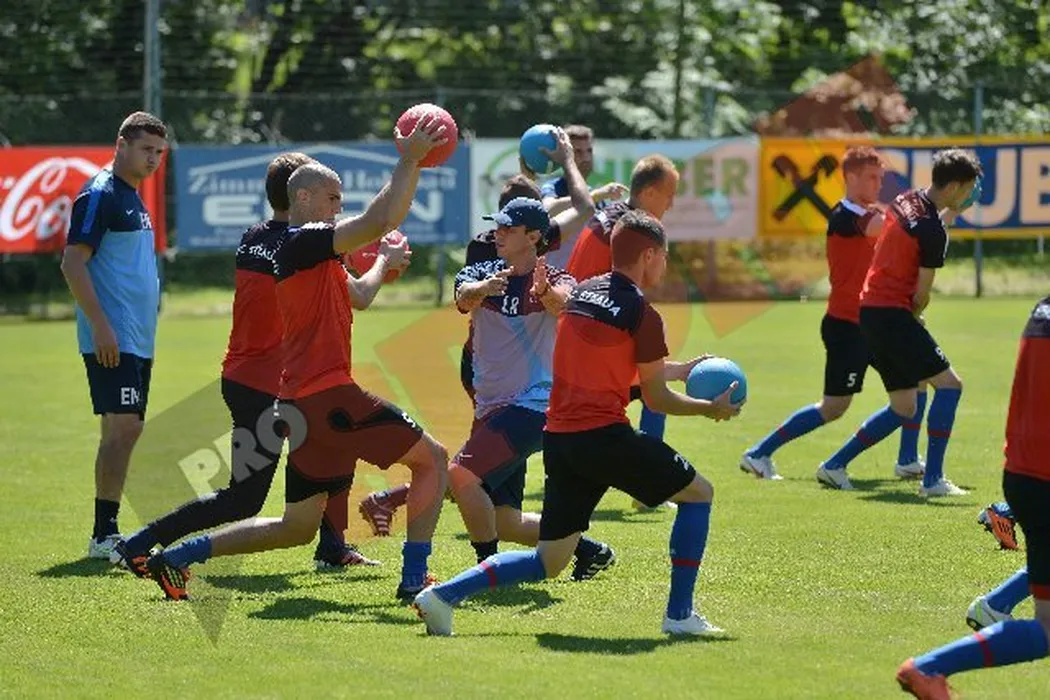 Zâmbete și gambe încordate!** FOTO: a început CALVARUL pentru Steaua! Ce le-a pregătit Reghe la primul antrenament din Austria
