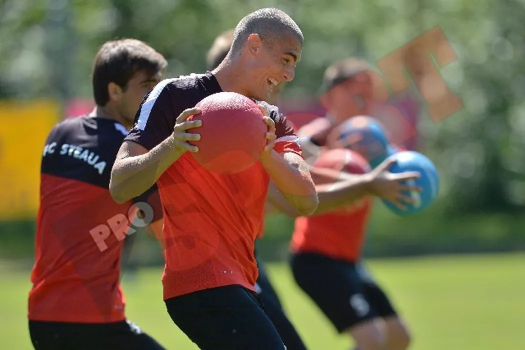 Zâmbete și gambe încordate!** FOTO: a început CALVARUL pentru Steaua! Ce le-a pregătit Reghe la primul antrenament din Austria
