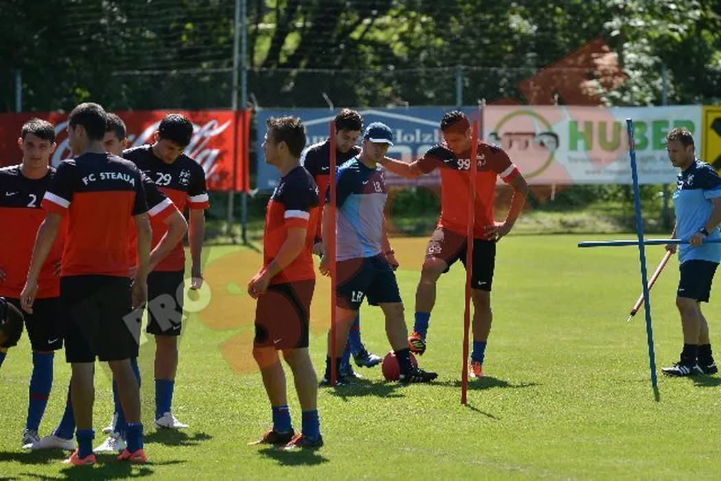 Zâmbete și gambe încordate!** FOTO: a început CALVARUL pentru Steaua! Ce le-a pregătit Reghe la primul antrenament din Austria