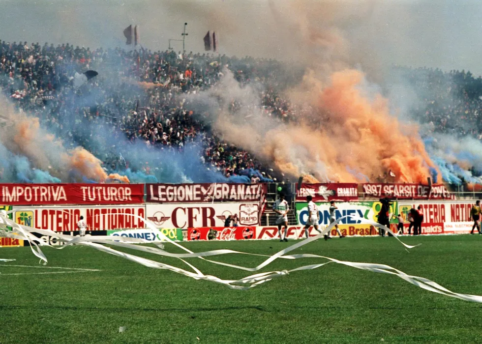 Galeria rapidista de la tribuna a doua incalzeste atmosfera cu fumigene aprinse