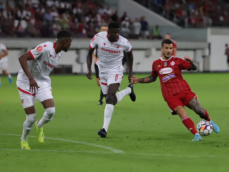 Vhakka Eddy Stelh Gnahore si Cosmin Gabriel Matei in meciul dintre Sepsi OSK Sfantu Gheorghe si Dinamo Bucuresti, contand pentru Superliga Superbet, desfasurat pe Sepsi Arena din Sfantu Gheorghe, sambata 27 iulie 2024. © FOTO:Fekete Lehel/SPORT PICTURES