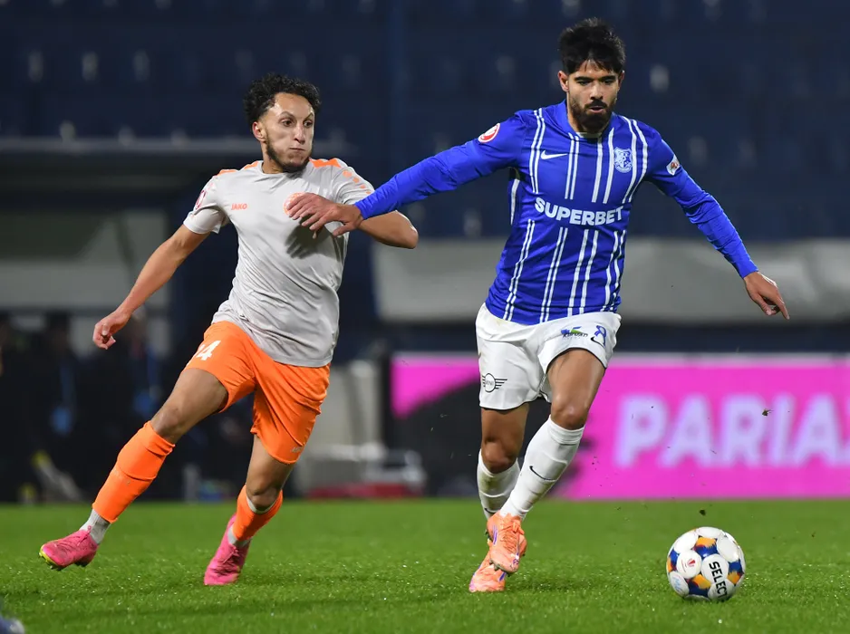 Ionut Daniel Vana si Yassine Zakir in meciul de fotbal dintre Metaloglobus Bucuresti si Farul Constanta, contand pentru Superliga Superbet, desfasurat pe Clinceni Arena din Clinceni, duminica 7 decembrie 2025. © FOTO:Daniel George Ilinca/SPORT PICTURES