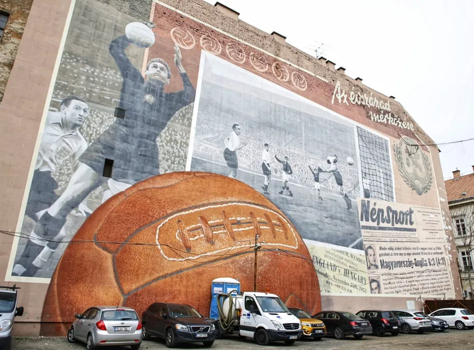 Zidul bucuriei sau cum păstrează ungurii eternă istoria fotbalistică a naționalei, în inima Budapestei! „Meciul secolului”, zugrăvit pe 1.000 de metri pătrați! VIDEO+FOTO EXCLUSIV