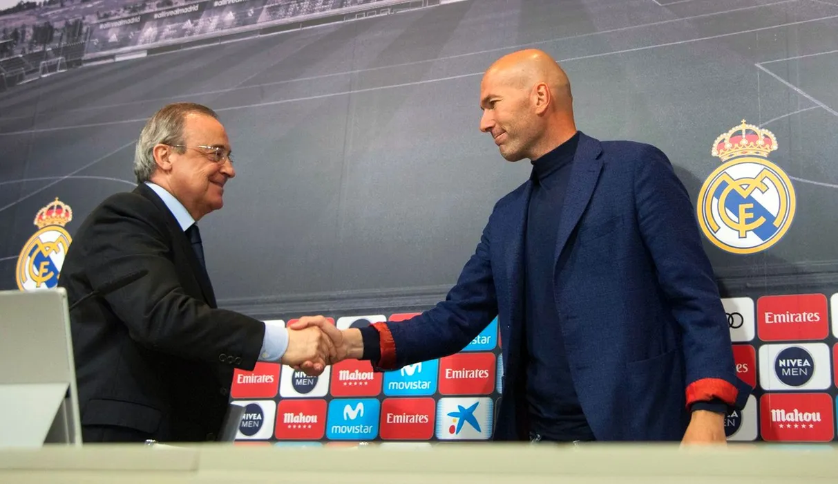 Real Madrid's French coach Zinedine Zidane resigns as coach with Real Madrid's President Florentino Perez