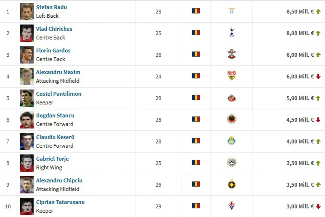 Ziua în care România și-a pierdut și ultimul jucător cotat la peste 10 milioane €! Cum arată acum TOP 10 cei mai valoroși români