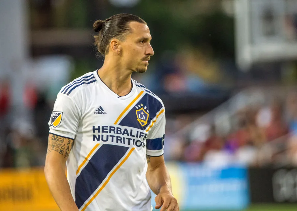 WASHINGTON, DC - AUGUST 11: Los Angeles Galaxy forward Zlatan Ibrahimovic (9) waits for a corner kick during a MLS match between D.C. United and the L.A.Galaxy on August 11, 2019, at Audi Field, in Washington D.C.