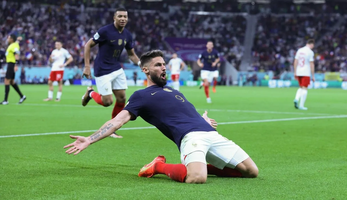 Kylian Mbappe (FRA), Olivier Giroud (FRA) during the World Cup match between France v Poland , in Doha, Qatar, on December 4, 2022.