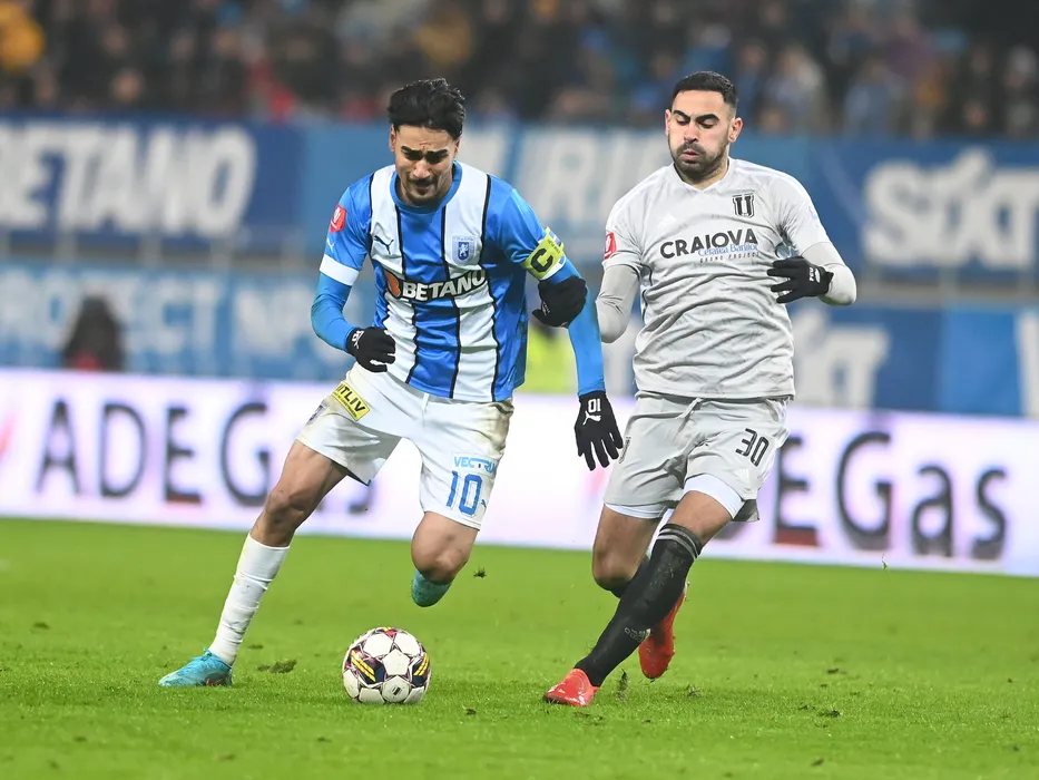 Stefan Baiaram si Andre P. Benjamin Van Durmen in meciul de fotbal dintre Universitatea Craiova si FC U Craiova, contand pentru Superliga Superbet, desfasurat pe Stadionul Ion Oblemenco din Craiova, sambata 3 decembrie 2022. © FOTO:Razvan Pasarica/SPORT PICTURES