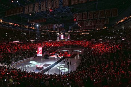 Arena Joe Louis în data de 6 martie 2014, cu ocazia retragerii tricoului cu numărul 5 de la Red Wings, tricou purtat de Nick Lidstrom pentru echipa din Detroit (Foto: AFP)