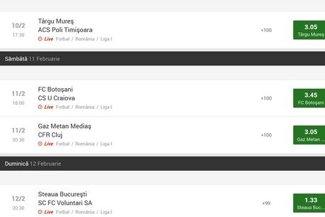Este etapa de campionat nu doar in Premier League, Serie A, Bundesliga si La Liga, ci si in Liga I din Romania, unde Viitorul si Steaua continua lupta pentru primul loc, de la distanta. Fiecare echipa joaca pe teren propriu si, teoretic, are cate un adversar pe care il poate invinge usor. Steaua joaca duminica in fata celor de la FC Voluntari, avand cota 1,33 pentru victorie (in comparatie, oaspetii au cota 9,00, iar un egal este cotat cu 4,80).