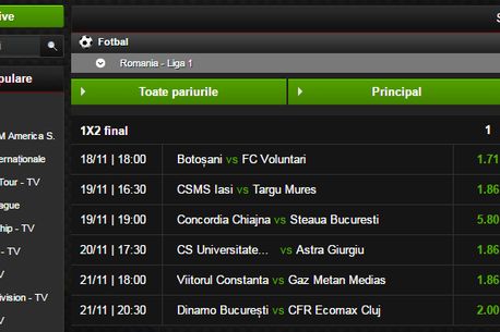 Opțiunile de pariu pot fi accesate fie printr-un click pe numele partidei, fie printr-un click pe semnul „+” urmat de cifre. Vei fi surprins să vezi câte sute de tipuri de pariuri există în anumite cazuri – mai ales pe disputele din campionatele tari și pe alte evenimente (de obicei în ziua disputării lor). În funcție de partidă, vei găsi pariuri pe: goluri, handicapuri, cartonașe, cornere, rezultate la pauză, intervale de timp etc.