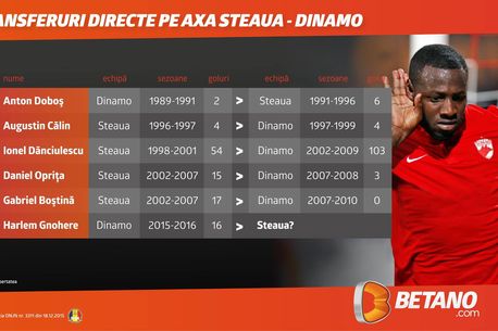 Așa cum arată graficul de mai sus realizat de Betano, primul transfer între cele două echipe a fost cel al lui Anton Doboș, fostul international. El a marcat la Dinamo două goluri și apoi la Steaua șase.