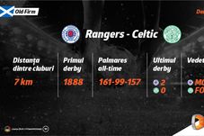 Când vine vorba despre fotbalul din Scoția, istoria duce spre două direcții clare: Rangers și Celtic, marile rivale din Glasgow despărțite de doar șapte kilometri. Au început lupta directă devreme, în 1888, iar de atunci Old Firm s-a jucat de 400 de ori. Echilibrul e evident (161 de victorii Rangers, 99 de egaluri și 157 de succse ale lui Celtic), iar ultima confruntare s-a terminat vu victoria formației lui Steven Gerrard, 2-0.