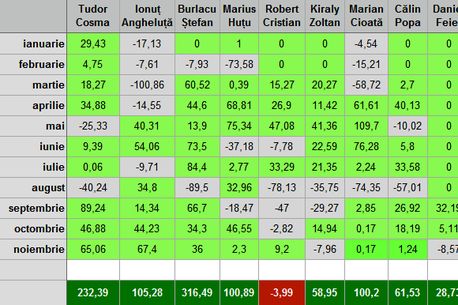 Salutare pariori! Avem plăcerea de a vă arăta care dintre favoriții voștri s-au bucurat de cel mai mare succes în primele 11 luni ale acestui an. Una peste alta, dacă ați jucat toate ponturile indicate de către specialiștii din cadrul echipei comunității pariorilor din România, buzunarele voastre ar fi astăzi mai bogate cu peste 1100 de unități!