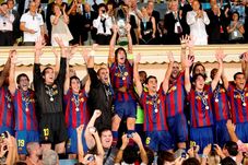 Puyol ridicând Supercupa Europei, după o finală în care Barcelona s-a impus cu scorul de 1-0 (după prelungiri) în fața unui Șahtior Donețk antrenat de Mircea Lucescu