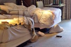 Independent de motivele care au dus la ceartă, jurnaliștii de la TMZ au surprins imagini din apartamentul de hotel unde a avut loc oribila scenă: cearceafurile, ușa de la baie și podeaua erau pline de sânge.
