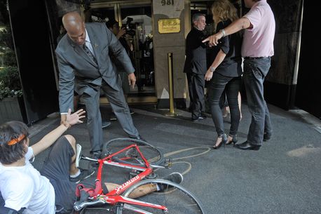 Conform Daily Mail, „capul răutăților” a fost Carl Wu, un papparazo care s-a folosit de o bicicletă în încercarea de a se apropia cât mai mult de australianca de 46 de ani, în momentul în care aceasta a ieșit din hotel.