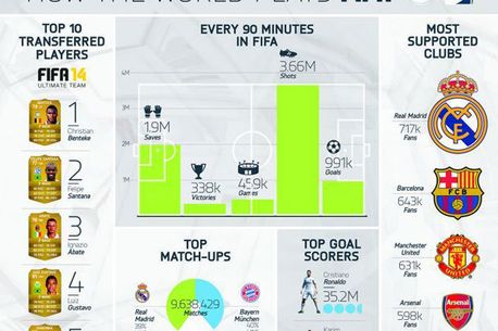 Cristiano Ronaldo este unul dintre cei mai jucați fotbaliști din FIFA 14, dar și printre cei mai eficienți. Conform unei statistici pulicate de EA Games – producătorul jocului – cu starul portughezului s-au marcat până acum în FIFA 14 nu mai puțin de 35.2 milioane de goluri. Este fotbalistul care a dat cele mai multe goluri în celebrul joc.