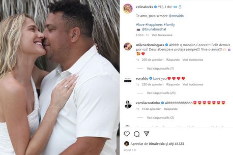 „Da, vreau! Te iubesc pentru totdeauna Ronaldo”, a scris Celina Locks pe social media, după ce Ronaldo i-a adresat marea întrebare chiar pe plajă. Blondina s-a lăudat și cu inelul de logodnă impresionat pe care Ronaldo Nazario i l-a dăruit.