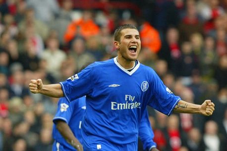Adrian Mutu, fostul star al lui Chelsea, celebrează golul împotriva lui Arsenal, din F.A Cup, Stadionul Highbury din Londra, 15 februarie 2004. sursă foto: AFP PHOTO