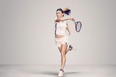 Pictorialul propune cadre în care este surprinsă postura în timpul principalelor lovituri din tenis (forehand și serviciu) și fotografii în care accentul este pus pe mimica Simonei.