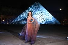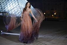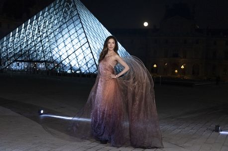 Rochia ondulată purtată de Gu, împodobită cu două aripi imense, face legătură cu una dintre cele mai faimoase sculpturi ale muzeului: zeița Nike în rolul Victoriei înaripate din Samotrakia.