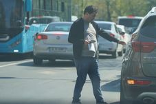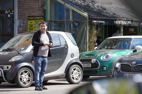 Luțu a parcat SUV-ul, apoi și-a pus regulamentar masca și a intrat la bancă, dar nu înainte de a verifica atent telefonul, probabil mesajul fiind unul cu indicații importante privind sumele de bani și conturile necesare tranzacției!