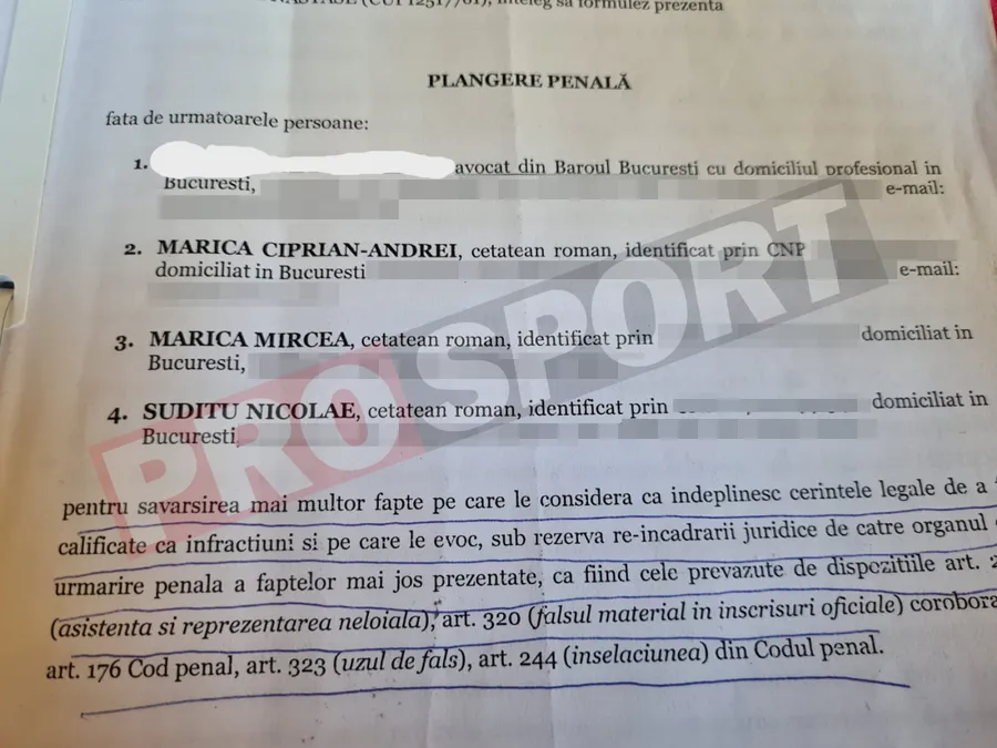 „Scrie aici că eu am făcut cerere de adeziune la noua fundație preluată de Ciprian Marica. Aia la care eu am renunțat și cică am semnat să i-o dau lui. Semnăturile sunt false, după cum v-am declarat… Din acest motiv i-am făcut plângere penală.