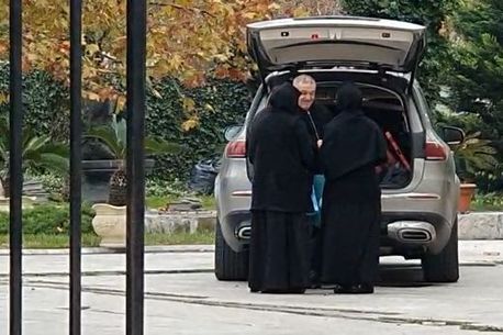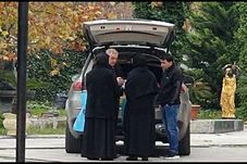 După ce a privit mai mult timp în telefon, omul de afaceri a primit anumite obiecte de la călugărițe. Totul s-a petrecut sub privirile omului de încredere al finanțatorului FCSB, Ionuț Luțu, care aproba din gesturi acțiunile patronului său.