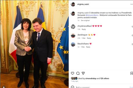 „A fost o deosebită onoare să mă întâlnesc cu președintele României Nicușor Dan. Mulțumiri Ambasadei României la Paris pentru această invitație!”, a scris Virginia Ruzici după întâlnirea cu șeful statului.