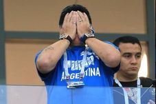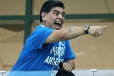 Diego Maradona a ajuns echipat cu o vizieră uriașă, care-i acoperea tot capul, pentru a lua loc pe banca echipei sale Gimnasia La Plata, care a întâlnit rivala San Lorenzo, într-un meci amical.