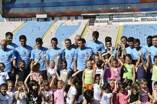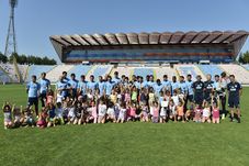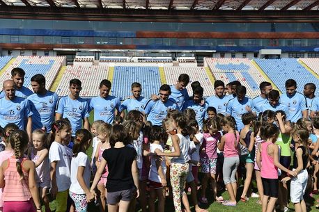 Surprinși de „atacul” micuțelor, fotbaliștii le-au luat în brațe, le-au mulțumit pentru susținere și au promis că vor lupta cu toate forțele în meciul cu bulgarii de la Ludogorets de săptămâna viitoare. Au făcut o poză de grup, apoi fetițele au asistat la antrenament de pe tușă și din tribuna oficială.