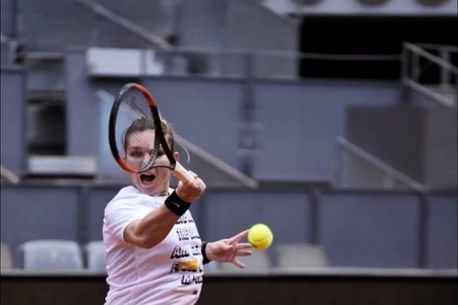 Cea mai bună jucătoare de tenis a lumii a afișat un mesaj războinic la prima apariție pe terenul central Manolo Santana, de la Madrid, acolo unde este neînvinsă de 12 meciuri.