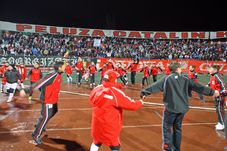 se aude celebrul motto „Campionii, campionii suntem noi!”, iar