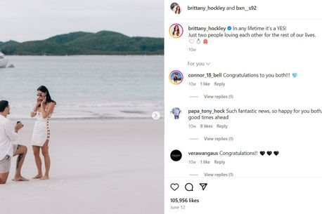 Brittany Hockley a spus că îl iubește și mai mult de când acesta a îngenuncheat și susține că a știut că el este cel care i-a fost sortit încă de când au început să se întâlnească.