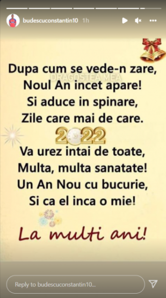 De pe lista celor care au transmis mesaje în mediul online înainte de trecerea în 2022 nu a lipsit nici simpaticul Constantin Budescu de la FCSB, care a ales să le ureze în rime fanilor săi: