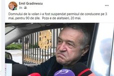 „Domnului de la volan i-a fost suspendat permisul de conducere pe 3 mai, pentru 90 de zile. Poza e de alaltăieri, 20 mai” a postat comentatorul sportiv Emil Grădinescu pe Facebook, imaginea fiind sugestivă: Becali la volanul unui Maybach. Grădinescu a completat, la comentarii: „Dovada a expirat in 18 mai. Poza e facuta 2 zile mai târziu. Dacă a contestat în instanță, a trebuit să ia dovada contestației de la grefa tribunalului și să o depună la poliție. Sunt curios dacă a făcut asta”.