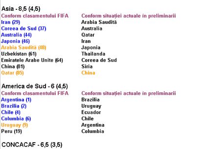 > Conform „The Guardian„, dinspre FIFA răzbat semnale că noua repartiție pe continente a locurilor la turneul final ar urma să arate astfel: