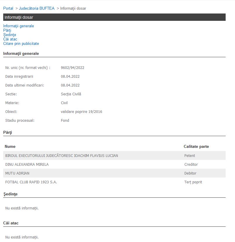 Vedeta TV își cere drepturile încă din 2016. Acum pentru a obține întreaga pensie alimentară s-a adresat unui birou judecătoresc. A primit decizie favorabilă, definitivă, și antrenorul Rapidului e bun de plată. În cererea depusă la Judecătoria Buftea, Alexandra Dinu cere poprirea veniturilor fostului soț și ca terț poprit e trecut și clubul Rapid, pentru a fi sigură că datoria va fi plătită.