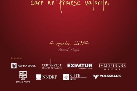 Gala Mediafax 2014 beneficiază de sprijinul Alpha Bank, Certinvest, Eximtur, Immofinanz, Tiriac Auto, NNDKP, CITR și Volksbank – Parteneri Gold.